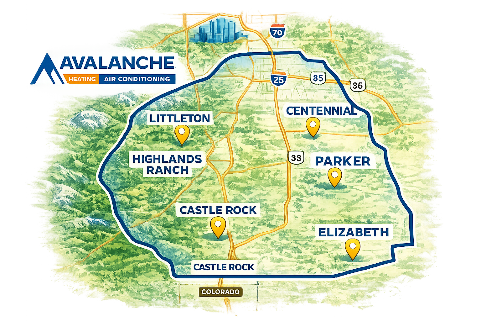 Avalanche HVAC Services is proud to be Castle Rock’s locally owned and operated, full-service HVAC company. Our reputation is built on quality workmanship, responsive service, and a commitment to doing what’s right for our customers—every time.